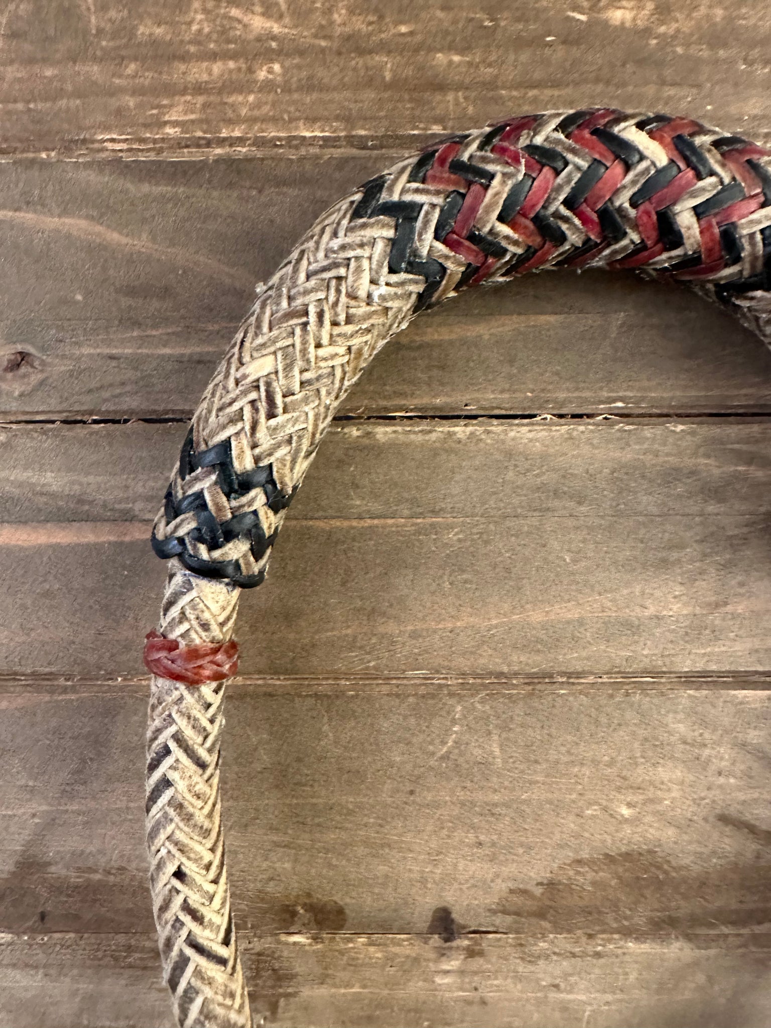 Bosal Beautiful 12 plait beveled cowhide rawhide  1/2" red/black accents #BB12 -S