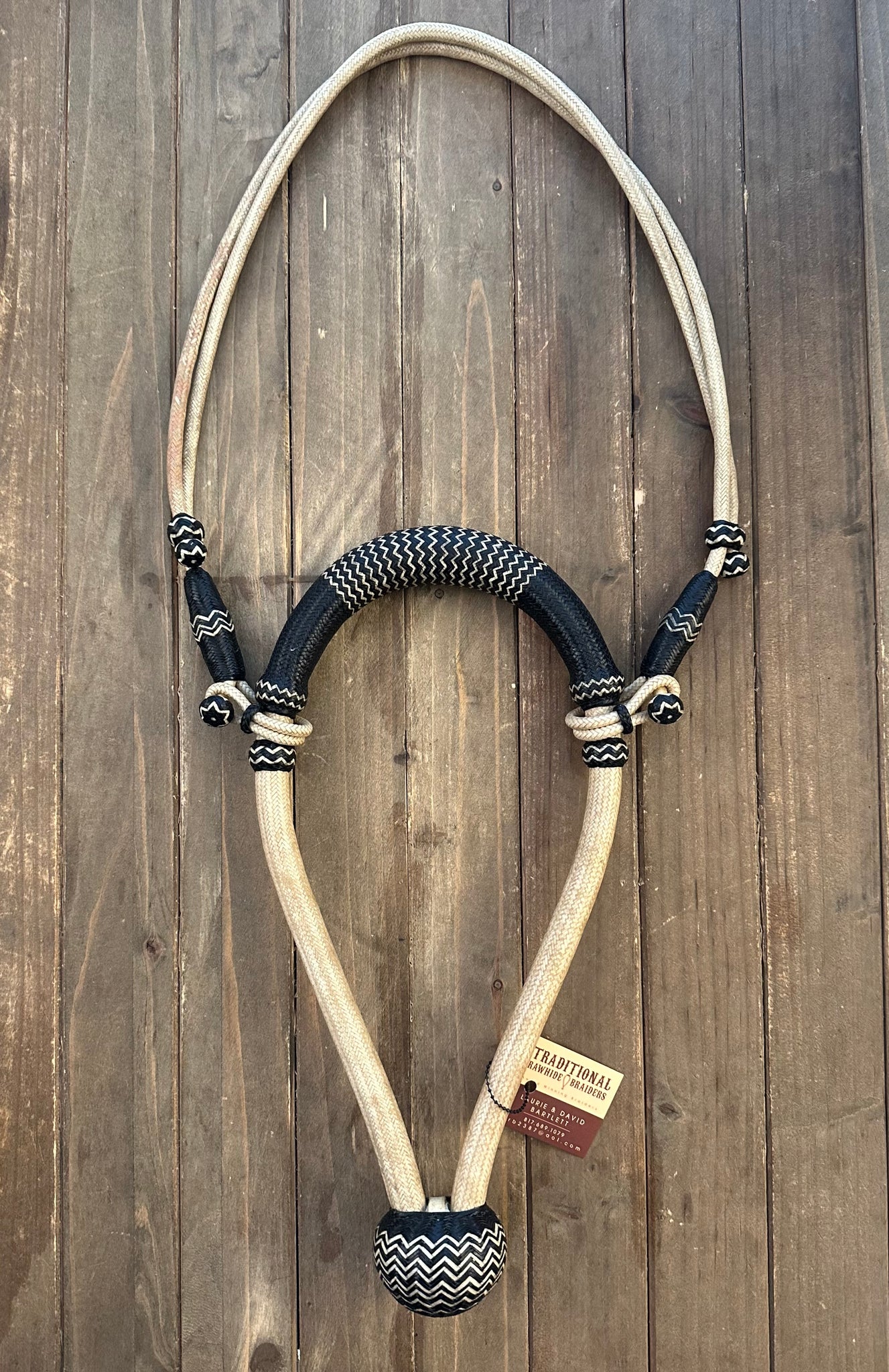 - Natural color 56 plait smooth cheeks with black noseband, headstall guides, and heel knot accented with natural accents. Matching bosal hanger with friction slide adjustment included.