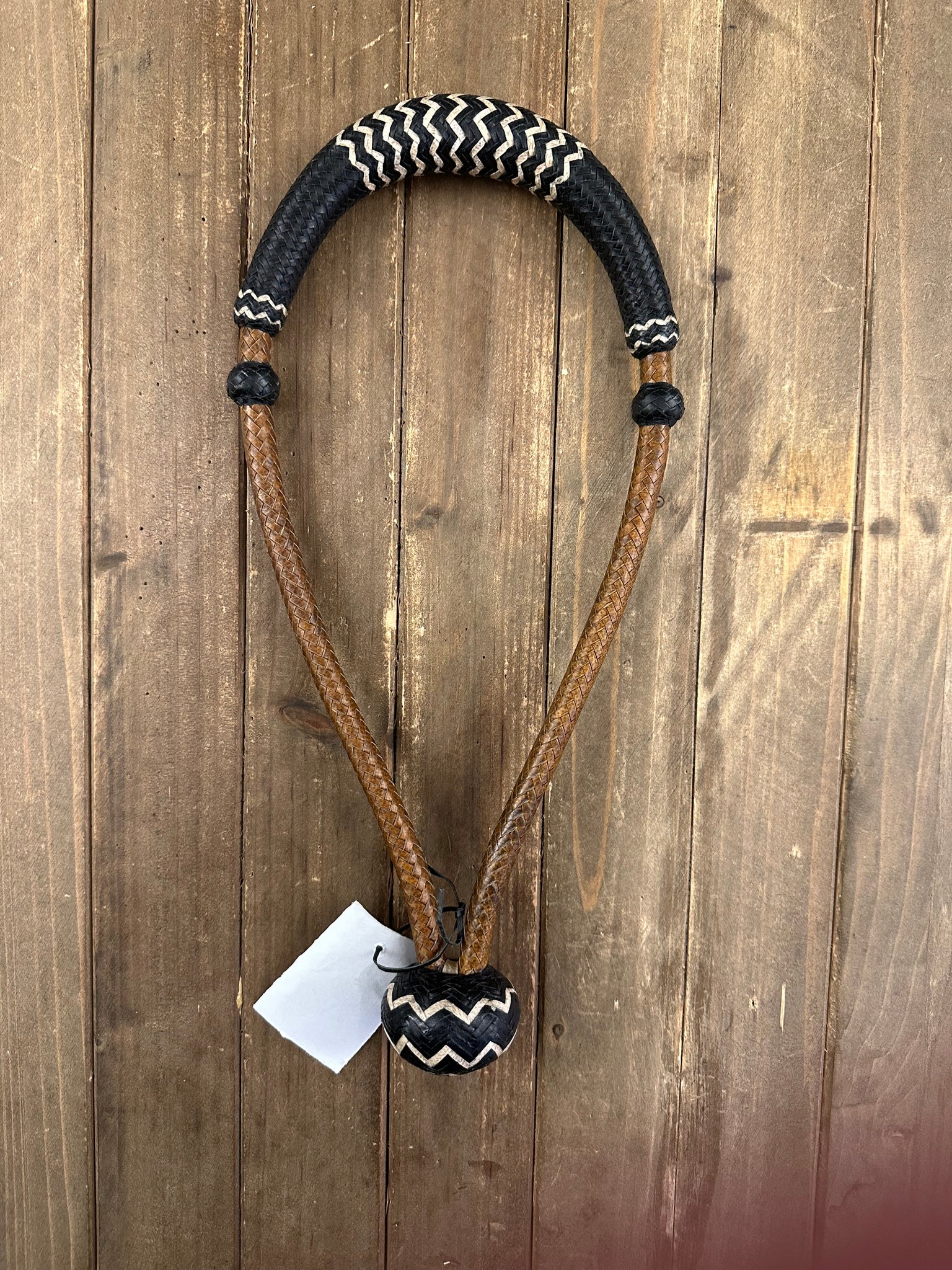 - Carmel cheeks with black noseband and heel knot featured with natural accents. Headstall guides are solid black