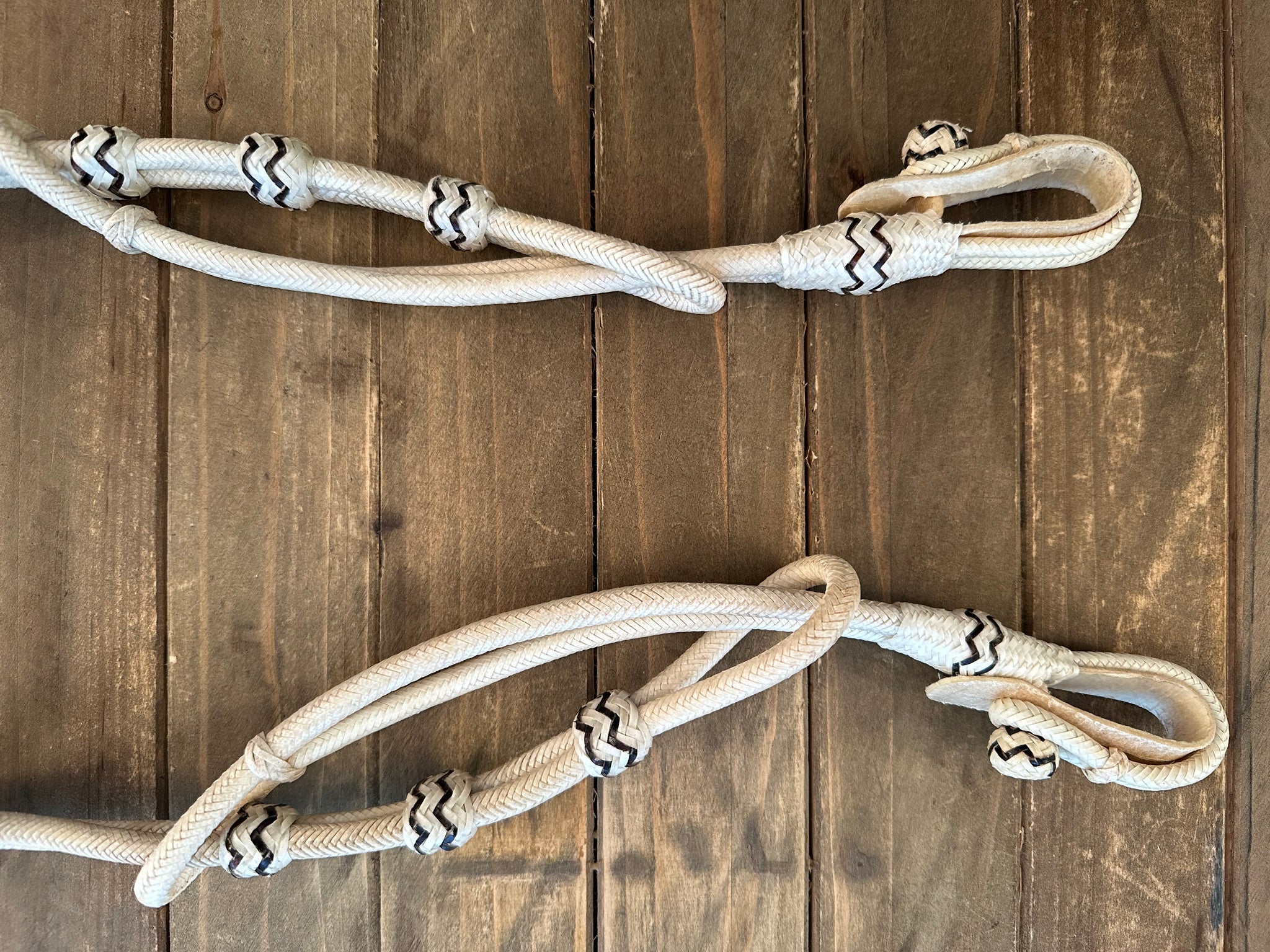 - Braided rawhide bit connectors with extra rawhide protective wear sleeve