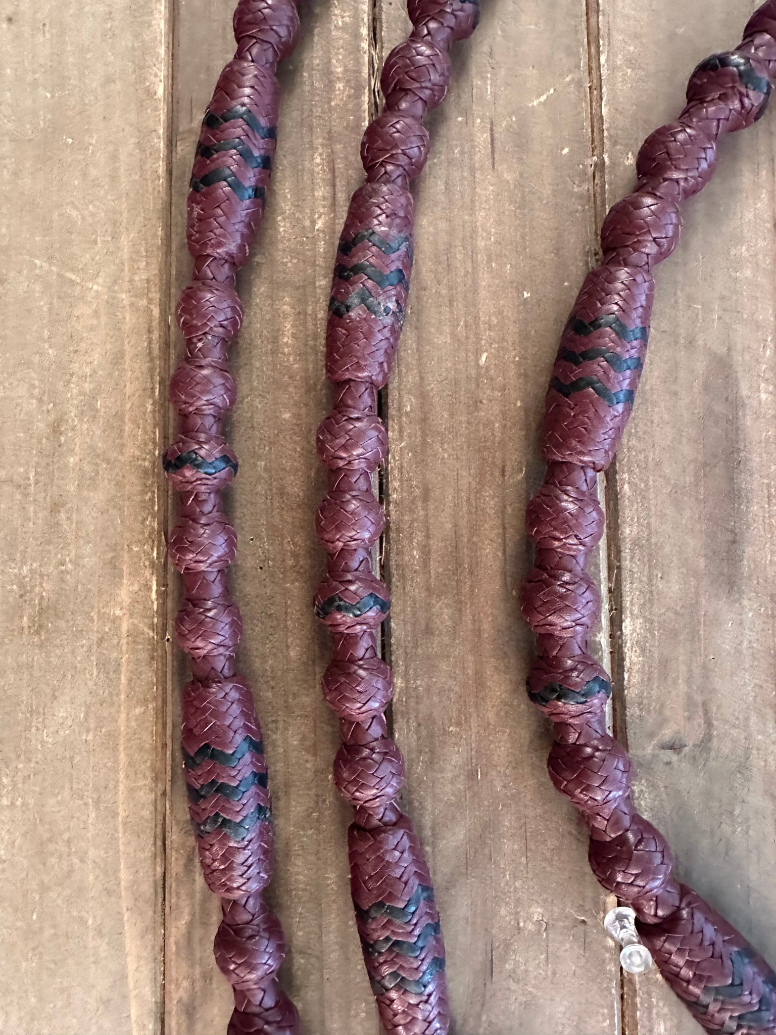 Romal Reins 16 plait 110” Kangaroo GM Pattern Burgundy Latigo Color