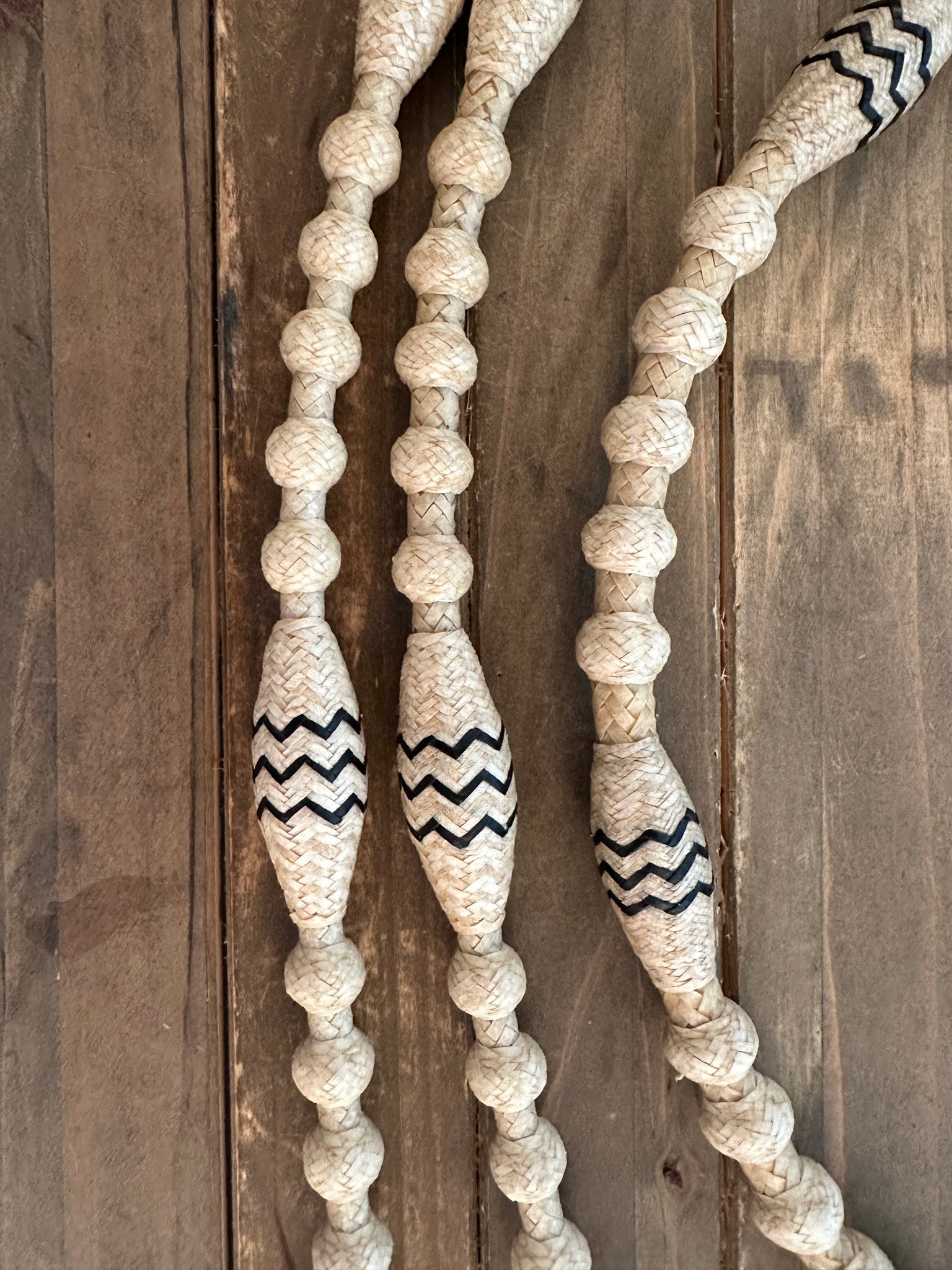 Natural rawhide color with black accents on barrel knots