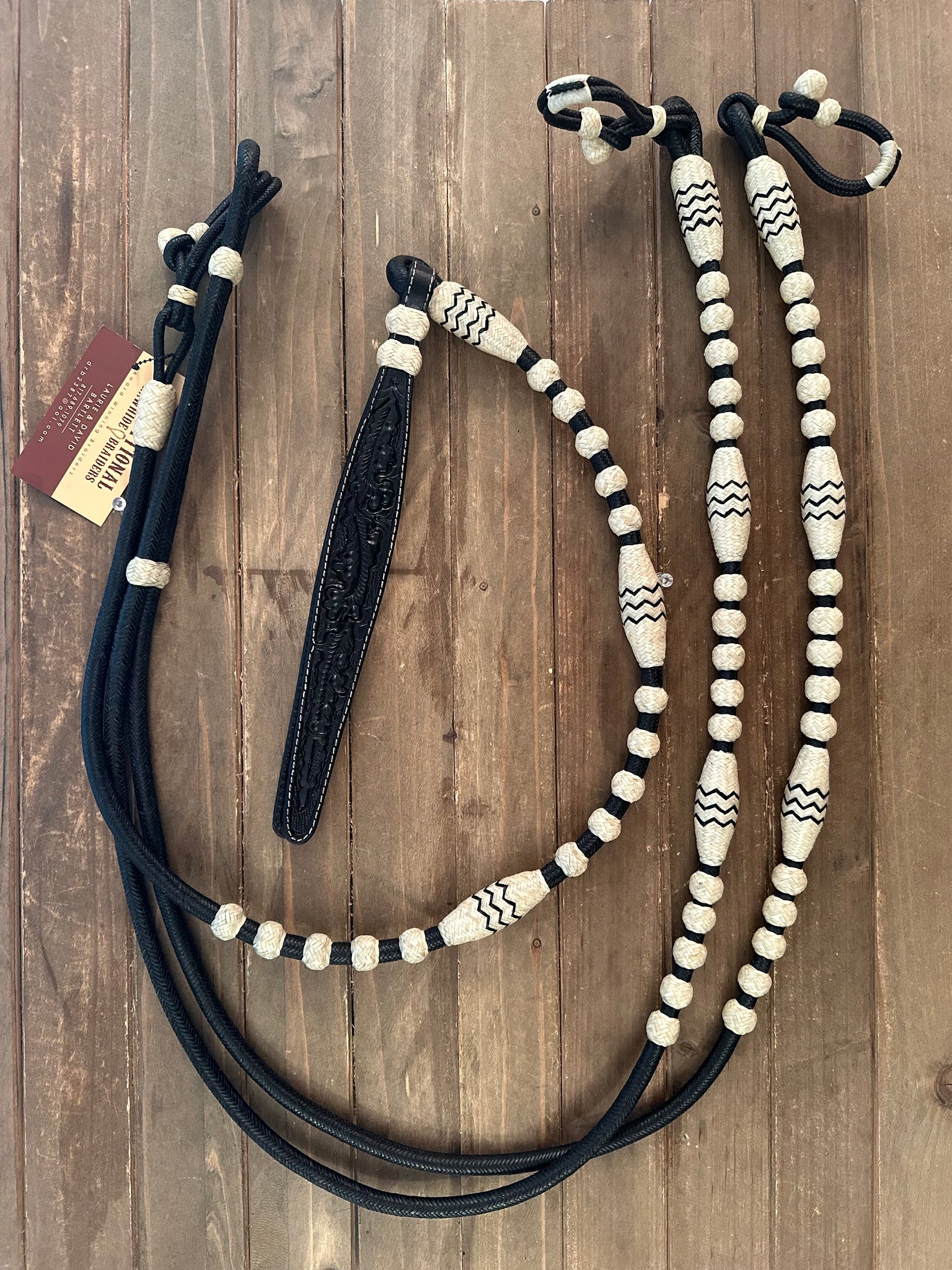 • Black reins with the barrels and buttons in natural color featured with black accents